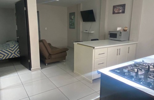 Disfruta un departamento con todas la comodidades que necesitas, pensado para descansar, visitar la ciudad o de trabajo, ubicado en la zona metropolitana de Guadalupe y Zacatecas a pocos metros del Tec de Monterrey y Relaciones Exteriorescon, tienes tiendas de conveniencia cerca así como transporte público a pie de calle.