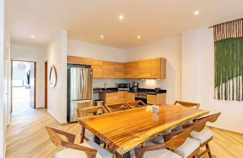 Tucked away in the lush jungle of La Veleta, this apartment transports you to the magic of Mexico. You can enjoy swims in the shared swimming pool and refreshing dips in the hot tub. There’s a shared gym and a barbecue area as well as a private terrace – perfect for evening drinks. Inside, the rooms are simple, fresh and family friendly. Private parking is available and you’ll find plenty to explore in the neighbourhood with Downtown Tulum just a short drive away.