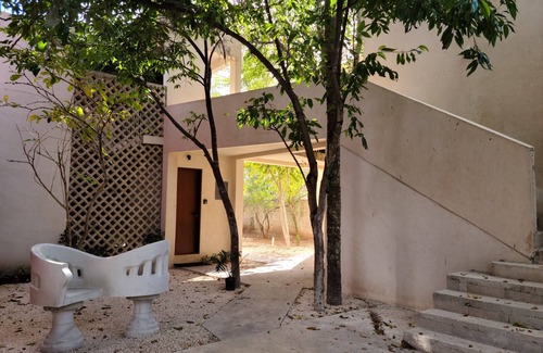 Enjoy our new, quiet and central apartment Flor de Mayo, with a pool and large gardens, located in Chembech, just 10 blocks from the main square. It has a dining room, fully equipped kitchen, private patio and a bedroom. 409 ft2. Find all kinds of commerce around, as well as parks, flea markets, snacks and more. Live Mérida as if you were a citizen assisted by us when you need something. We help you acquire tours, car rentals and advice for your stay.