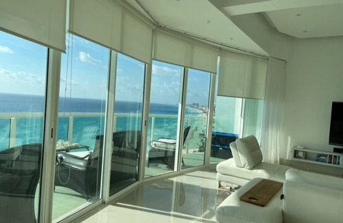 Ultra Luxury over 3400 square foot apartment in a secure gated complex with private beach. One of a kind brand new reconstruction with almost 360 degree ocean front view throughout. All amenities of a beach front resort with private beach. Spacious open floor plan. Comfortable top quality pillow top mattresses. Luxury bathrooms. 20 minutes to downtown Cancun. Five star restaurants, entertainment and high end grocery store nearby. Free Private Butler. Round trip air port transportation provided. Private chef and daily maid service available.