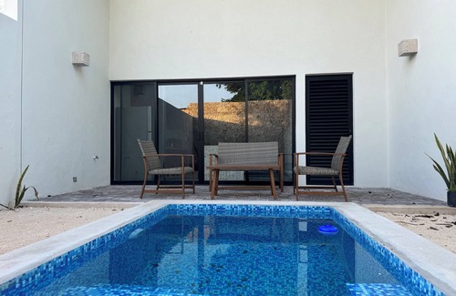 This incredible house was designed and built to be a short term rental property, taking care of a beautiful laurel tree that is over 100 years old. The entire house is air conditioned. It has a unique design with many works of art, hand-painted hats by renowned Yucatecan artists and spectacular ceiling lamps made by indigenous Mayans. The house has a swimming pool, barbecue, garden furniture and a small sandy beach instead of the traditional garden, which gives a unique touch to the house.