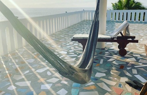 Casa El Delfin is a 3-level house only steps away from one of the most beautiful & peaceful beaches on the Pacific coast in Oaxaca, Mexico. It's located on the bay of Estacahuite just 5 minutes away from Puerto Angel (a small fishing village) & 30 minutes from Huatulco Airport. This listing is for the bungalow on the rooftop (3rd floor). It includes the entire rooftop (300 meters), open-air bedroom, dining space, and bathroom. The ocean view from the house is unforgettable.