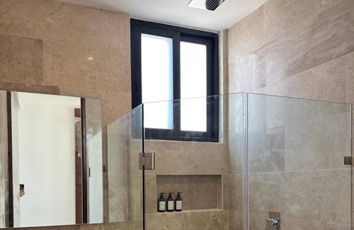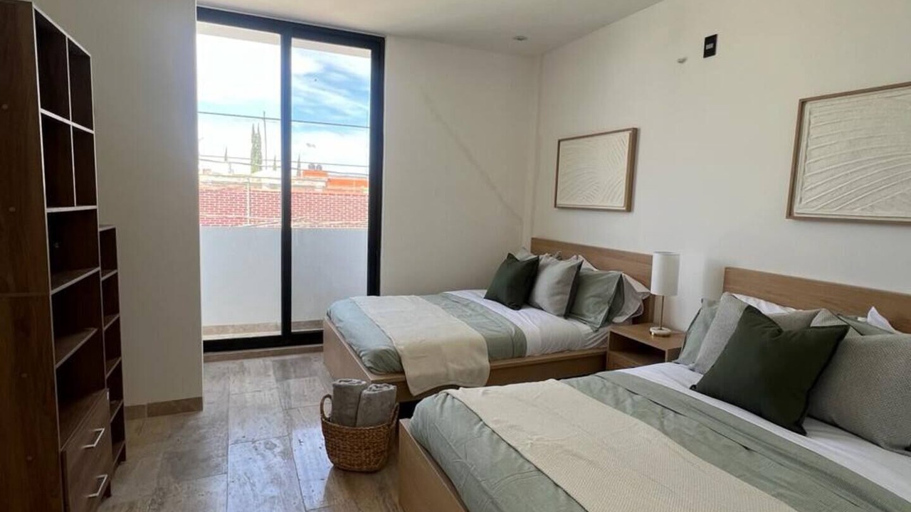 Welcome to our home in the heart of the city, just steps from the San Marcos Fair! Our house, with a beautiful terrace, offers unforgettable views of the sunsets on Cerro del Muerto, ideal for relaxing and enjoying. This central location is perfect for those who want to explore the fair and local charms. The construction is new, with spacious spaces, luxury finishes and all the comforts. We also have onsite parking for your convenience