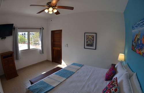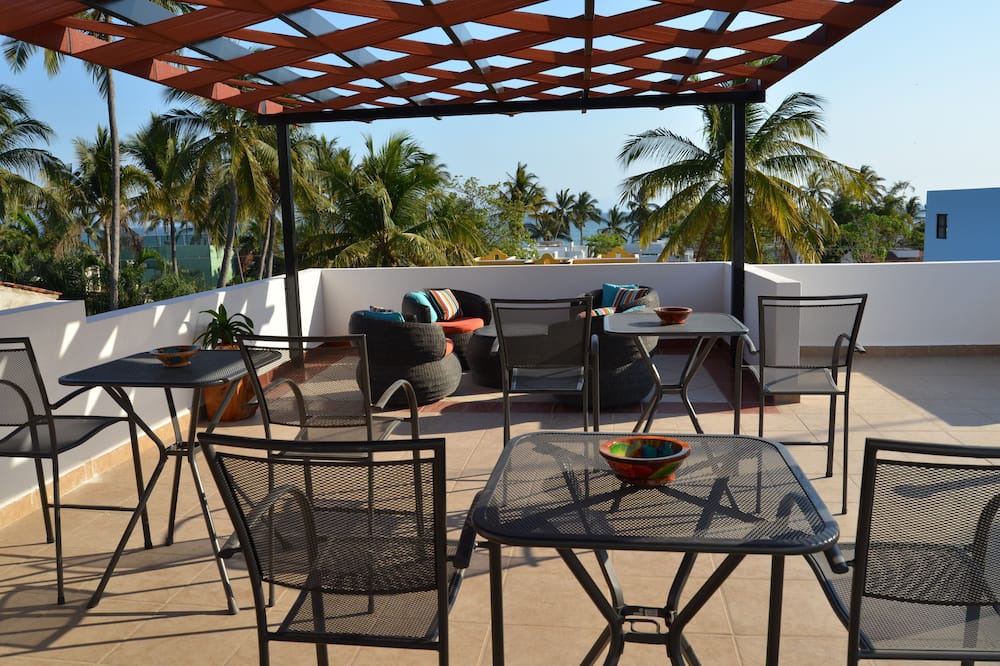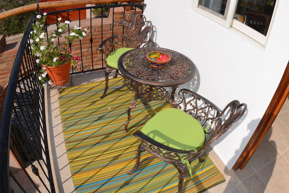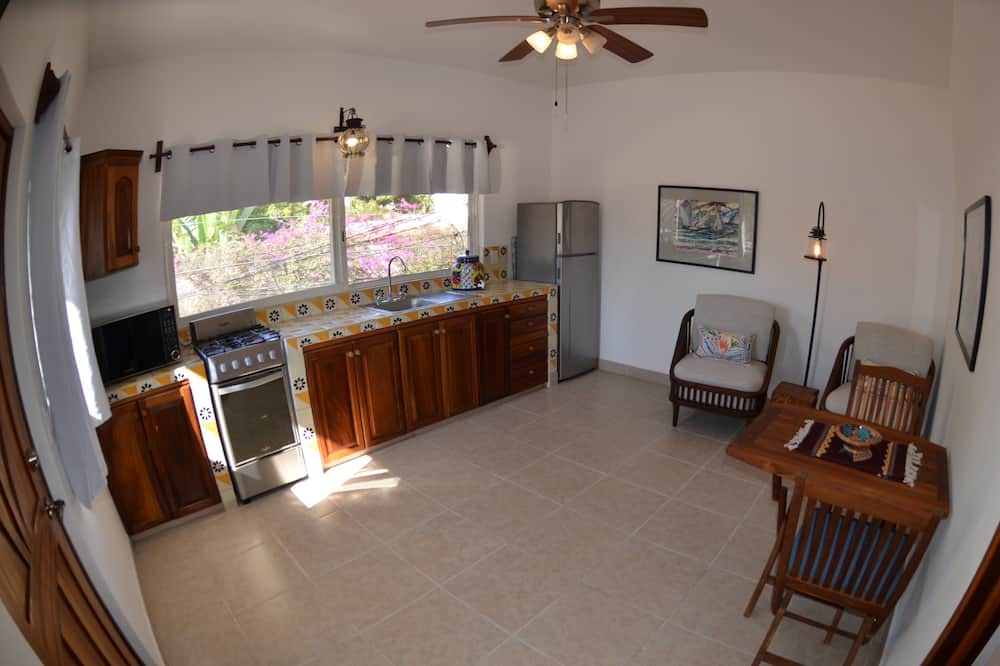 Casita Tortuga is a 1 bedroom (King Bed), 1 bathroom with full kitchen and outdoor balcony seating area. This (5) - unit complex also includes a grill area, roof top lounge area with views of the bay, on site washer/dryer, concierge services, weekly cleaning, and complimentary weekly happy hour with snacks and drinks. Also available are complimentary airport transfers and weekly ride to the grocery store for long term rentals. Casitas de la Bahia is a perfect mix of traditional Mexican charm with modern conveniences, in the heart of the Golden Zone. Walk to shops, restaurants, Bucerías centro, and less than 2 blocks to the beach.