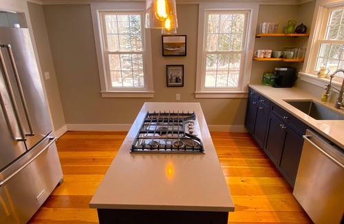Forget your worries in this spacious and serene space. Dragonfly Cottage is a singular unique Maine get-away in the heart of the Blue Hill Peninsula. The house has undergone many new upgrades providing a warm, comfy-cozy atmosphere. The wooded 1.5 acre parcel is located in the town of Brooklin. The property is 5 miles from Wooden Boat School and is centrally located for any number of activities, including staying home and peacefully reading.