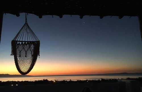 This privately-owned, newly furnished, private house has everything you need for a vacation whether "working from home", fishing, wind-sports, mountain-biking, or just relaxing and enjoying ocean views from the rooftop patio. Sleeps up to 5. 1 1/2 bath, fully supplied kitchen with blender for those evening margaritas on the patio. Strong Wi-Fi, a big flat-screen TV, and Netflix access, too! A quick drive or a 2-minute drive (1/2 mile) to the beach, stores, and restaurants. Rooftop shaded patio, and amazing views of the mountains, Cerralvo Island, and the entire bay of La Ventana. Reserve now at this great rate! From one of our recent guests: "We were able to enjoy the beaches with no problems. The road there was in excellent shape and I appreciated the beautiful mature cactuses that carpeted the area. Fresh fish from the sea. A natural dessert sanctuary by the sea."