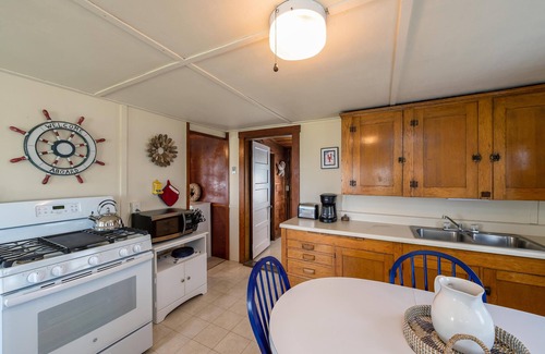 Inside the cottage you'll find a living room area with a smart TV and a futon that opens to a full bed, an eat-in kitchen with all you'll need to cook at home and dining for four, a bedroom with a full bed, and a 3/4 bathroom with a shower. Outside there is an ocean view deck with seating for four.