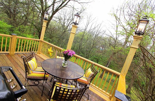 BRAND NEW LISTING conveniently located in South Nashville only 8 miles from the heart of Lower Broadway and downtown Nashville! Fun and colorful Music City themed decor sets the stage for a comfortable and spread-out stay in this spacious 2,000+ sq. ft. vacation getaway. Several areas for entertainment, eating and relaxing with ample sleeping accommodations. Great for families, business groups, reunions and bachelorette parties. Rolling hill backyard retreat with a private deck and beautiful view. Fun-zone filled with a bar, video games, casino games, board games, big screen TV and a library filled with many DVDs.
