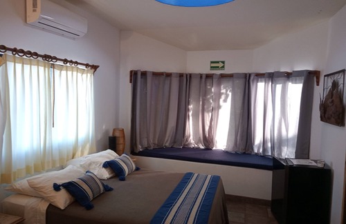 The six private rooms of the Hacienda de Palmas are spacious and clean. Most of the rooms are located on the second floor, and have their own individual style and decor. Each room has a mini fridge, new inverter style air conditioning, fans and bathrooms (with body soap, shampoo and conditioner), towels, etc.