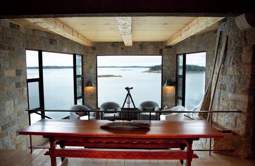 High Head comprises three distinct dwellings, each reflecting whimsical Nordic-inspired architecture. The main residence, Over Head, accommodates up to 16 guests, offering a spacious and inviting environment for family gatherings. The Tower House, a striking architectural gem, provides a luxurious space for up to 6 guests, while the secluded Beyond Reach cabin offers an intimate retreat for 2. The two primary residences feature elegant dining rooms and panoramic views, enhancing the sense of serenity and connection to nature.