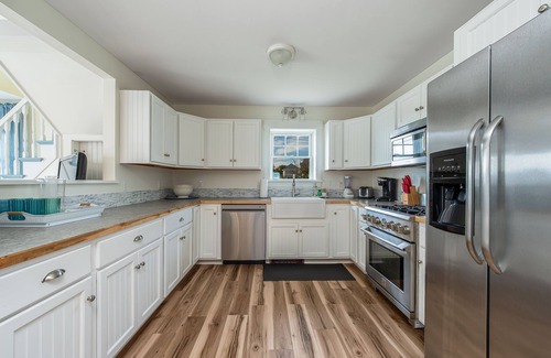 Completely renovated from the foundation up and completed in August 2011, Homeport boasts a modern design that allows you to take in stunning views of Mackerel Cove and its beach. Nestled among family-owned properties passed down through generations of lobstermen, this home enjoys a prime location on Bailey Island, just a short walk from the Bailey Island General Store, Land's End Gift Shop, and several beaches. With breathtaking sunsets and the feeling of being surrounded by water, you'll truly experience the essence of a Maine coast getaway. The picturesque views of Mackerel Cove’s waterfront stretch across anchored boats and lobster docks, leading out to the open ocean. Cool ocean breezes gently transition hot summer days into peaceful, starry nights.