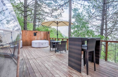 Located in a dreamlike setting surrounded by forests and mountains, this dome offers a unique experience of comfort and tranquility. From the comfort of the indoor facilities to the intimacy of the private outdoor hot tub, every aspect of your stay is designed to provide you with an unforgettable experience.