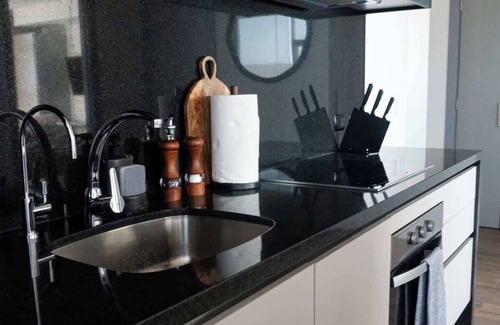 The apartment also features a fully equipped kitchen, perfect for anything from quick breakfasts to full meals. A comfortable living area and dining room make it easy to relax or entertain in style.