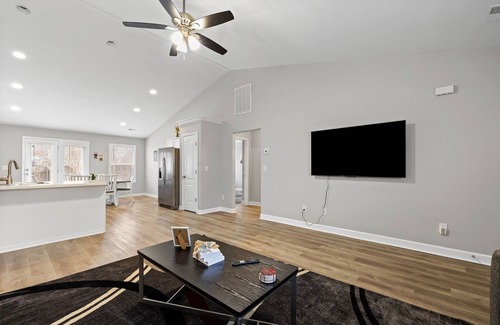 House includes all amenities of home including a fully stocked kitchen, keuig coffee maker, blender, toaster, work space, washer/dryer, smart tv's in all bedrooms and living room, free wifi, towels, shower gel, shampoo/conditioner and adjustable thermostat.