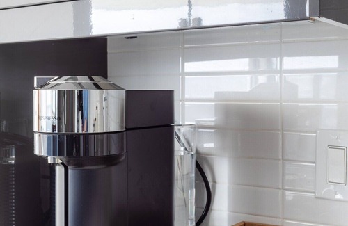 Attached to the dining room, the chef's kitchen is outfitted with gas-powered Viking ranges, an oven, restaurant sized refrigerator and freezer, plenty of cabinetry, plates, cups, and cutlery in addition to state-of-the-art kitchen appliances including a Nespresso coffee maker, amongst others.