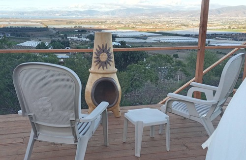 Escape, unplug, unwind, romance. Embrace Baja and the great outdoors from your own stargazer luxury bell tent perched on a large raised deck to showcase the 360° views. Nestled on the hillside above the Maneadero Valley on the Ruta del Mar, 20 minutes south of the hustle of Ensenada, Baja CA, Mexico, located on a small private ranch boasting an equine facility, the Lucky Tree Ranch.