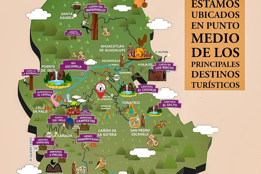 The location is privileged since it is located at the midpoint of the main tourist destinations in Pinal de Amoles. In addition, it is located 17km (20 minutes) away from the municipal capital, which will allow you to enjoy the tranquility and silence that nature offers.