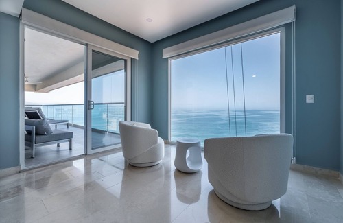 This stunning, brand-new beachfront condo near downtown Puerto Vallarta offers the ultimate in luxury beachfront living. Boasting four spacious bedrooms and four elegant bathrooms, this residence-oceanfront community is perfect for families or those who love to entertain. The open-concept design seamlessly connects the indoor and outdoor spaces, with expansive wraparound terraces that provide breathtaking panoramic views of the ocean, city skyline, and lush surrounding mountains. Every room is bathed in natural light, creating a warm, inviting atmosphere.