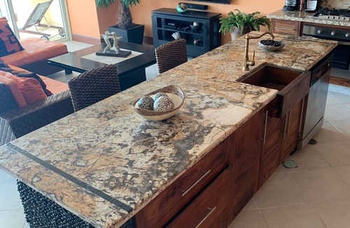 Enjoy your own 2 bedroom, 2 bath, luxury condominium, on the 10th floor of one of Ixtapa’s newest and most elegant additions. Suite 1003-S is spacious, bright, exquisitely furnished, (all custom furniture) has great views from every room and overlooks miles of tranquil beach and Ixtapa Bay. The condo is painted in vibrant Mexican colors along with beautiful pebble/stonework give the condo a very tasteful and upscale feel. Many original, unqie art work from Mexico.