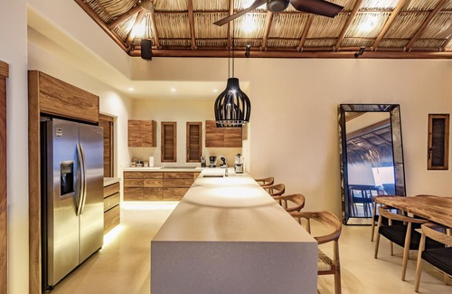 The chic and modern tropical design & décor featured throughout this home is seamlessly integrated with its surrounding landscape. The great room includes both indoor and outdoor dining and lounging areas and opens up to the private terrace and infinity pool for you to enjoy the hypnotic sound of the waves crashing on the shore below. This space includes an open-concept kitchen where guests can enjoy the colorful and flavorful world of Oaxacan cuisine. You may also take advantage of Montecito's onsite dining options, including in-villa dining for those nights you just don't feel like leaving the serenity of this space.