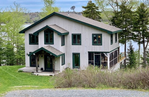 Overlook is perched above Frenchman Bay. Broad commanding views. Eagles, deer and Loons are common sightings. It is a spacious Post & beam home with an open concept living room/dining room with a cathedral ceiling, and ceiling to floor, wall to wall windows facing bay. Access to stony beach is steps from door. Great WiFi, line phone. Kitchen well equipped . 4 spacious, comfy bdrms, plus fold out couch. 3 full baths, screened in porch, spacious deck, washer, dryer. Up to 10 people. 2,300 sq ft