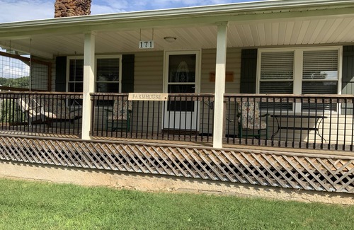The Farmhouse at Creekstone Cabins Plus is a spacious, open floorplan home with many outdoor activities on site such as horseshoe, corn hole, hiking/walking trails, fire pit, creek access, and more. It is accessible, in addition to the front entrance , by an easy incline ramp to the back deck where a wheelchair can be rolled into the home with no steps. Short travel times to surrounding towns such as Asheville, Waynesville, Hendersonville, Black Mountain, Weaverville. Lots of attractions and interesting things to do during your stay. PETS ARE ALLOWED FOR AN ADDITIONAL FEE DETAILED in "House Rules, Additional Rules" section.