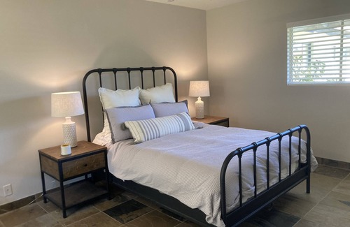 Stay in your private and peaceful casita (guest house) on the grounds of a lush gated Arcadia estate with views of camelback mountain. Surrounded by citrus trees, this guest house has a comfortable living area, full kitchen and large bedroom in the most beautiful neighborhood in Phoenix. This is centrally located with great access to old town Scottsdale and downtown Phoenix.