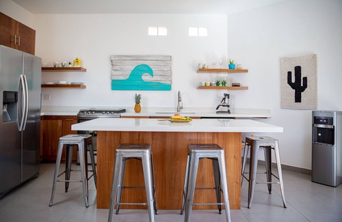If you watched our family's episode, or are just looking for the perfect vacation rental at Cerritos Beach, you are going to love our Beach Pad. Named for its chill environment and proximity to the safest swimming beach around. The Beach Pad has a relaxing beach vibe with comfortable furnishings, modern amenities, stylish art and beautiful local woodwork.