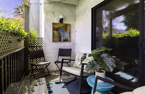 Step outside your door to bask in the warm Palm Springs sun on your private deck. Enjoy your morning coffee or unwind with an evening cocktail while soaking up the serene atmosphere. Just a few steps away, you’ll find the heated communal swimming pool, perfect for cooling off amidst lush landscaping that enhances your peaceful escape.