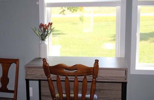 Stoney Lane Retreat is a charming little rental in the Farwell/Clare, MI area. Tastefully decorated and sparkling clean, you'll find this spot a perfect fit for your next getaway. There's an eat-in kitchen flooded with natural light and furnished with the basics for cooking and baking. The living room is cozy with ample seating. There is a master suite with a queen-sized bed, and two more bedrooms with full sized beds, and another full bathroom. Outdoors you'll find a spacious yard with a fire-pit and picnic area, all surrounded by beautiful farmland and the perfect spot to relax and connect with loved ones. Book today and let us make your Michigan stay a delightful one.