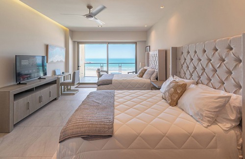 Located in Puerto Peñasco at Sandy Beach just steps away from town .Enjoy what this resort has to offer. With 1 king luxury bed, 2 queen beds, and 2 full beds, guests will have plenty of space to relax. The property also features 3 bathrooms with showers, a large living room. Spectacular View from the 8th Floor . Workout at a fully equipped Gym. Relax in the Lazy River or swim some Laps at the Semi Olympic Pool and many other pools you can Enjoy. We hope you enjoy what our place and Puerto Peñasco has to offer.