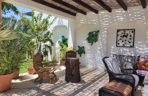 This memorable house is the perfect home base for your trip to San José del Cabo. Enjoy lush gardens and birds bathing in the fountain. Property faces East to rising sun and the patio pool area has sun most of the day. Pool has optional heating. $35/4hrs