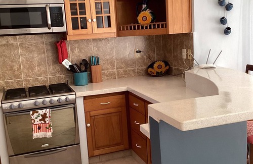 Fully outfitted, modern kitchen (no dishwasher) with lots of counter and cabinet space in beautiful, traditional Mexican hardwood. Two large leather couches; one is a double sofa bed, large wood kitchen table and eight chairs, 55” smart TV, Starlink access (fire stick or similar NOT provided), private WIFI, safe, refrigerator, gas stove, microwave, coffee maker, toaster, blender, coffee bean grinder, kettle, water cooler, in unit washer and dryer, iron, ironing board, blow dryer, new linens, fresh towels and more! Cleaning supplies, laundry detergent, toilet paper, dish soap and small “lifestyle” start up products are provided to ensure your arrival is stress free; all the comforts of home with a magnificent view! Pride of ownership shows in this unit and on site manager/owner for immediate contact.
