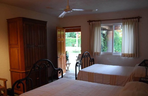 Enjoy your private pool and beautiful gardens in an exclusive residential area with a roundyear wonderful climate. Close to beautiful rustic Mexican small towns and ancient ruins. Just within walking distance from local shops for fresh fruit, flowers, and general groceries. The house has 4 bedrooms, each with its full bathroom. Equipped kitchen, breakfast area, dining room, living room, with barbecue and plenty of garden space with a large terrace for outside entertaining.