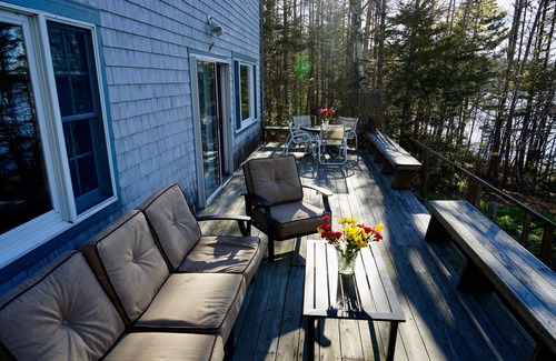 The large deck off the downstairs makes for outdoor dining and socializing all while listening to and watching the rush and ever-changing landscape of the tidal falls. Many marine mammal and bird (including eagles, osprey and loons) sightings await.