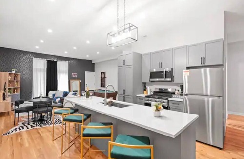 Discover Wicker Park in style! Spacious 2BD/2BA apartment, sleeps 7, perfect for groups. Enjoy a game of pool in the chic living area. Modern amenities, vibrant neighborhood. You will also receive a complimentary wine bottle with your booking! Your ideal Chicago retreat awaits--book now for an unforgettable stay!